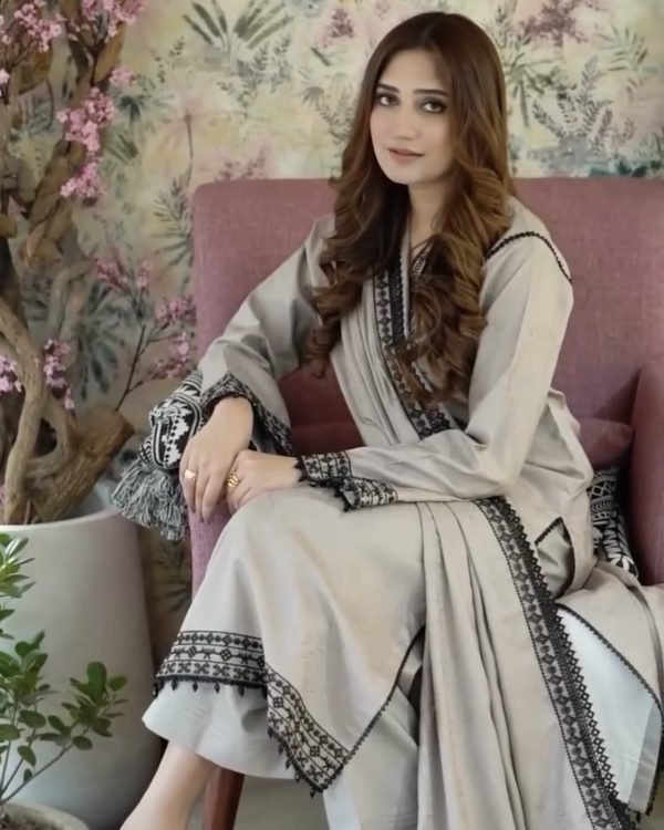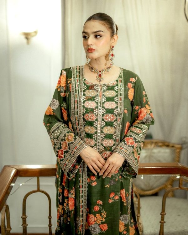 Crafted from premium Real Georgette Sharara Suit, this ensemble exudes elegance and sophistication. The heavy-look embroidered top is adorned with intricate hand Seroski work, adding a touch of luxury. The embroidered palazzo complements the design beautifully, while the matching embroidered dupatta completes the look with finesse. we strive to provide our customers with high-quality products...