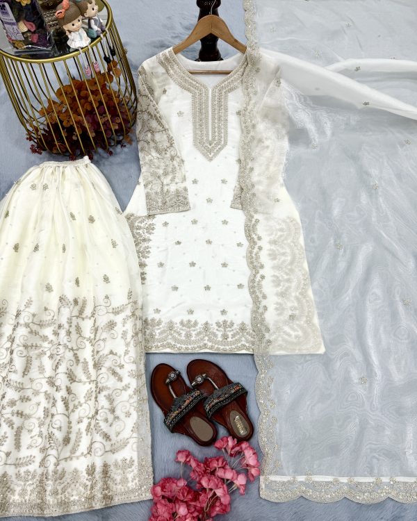 Premium Women Outfits for Elegant Party Wear If you are searching for stylish and luxurious women outfits that combine comfort with sophistication, this designer Chinon silk party wear set is the perfect choice. Crafted for high-society Indian women who appreciate premium detailing and elegant silhouettes, this top-bottom-dupatta ensemble delivers a refined ethnic look ideal for...