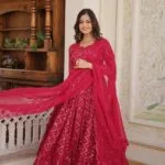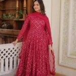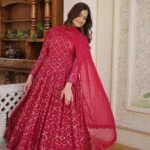Elevate your style with our Red & Purple Premium Faux Georgette Gown For Women, perfect for special occasions.