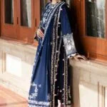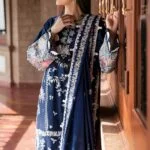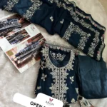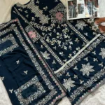 Top: Unveil the epitome of craftsmanship with our Georgette top, lavishly adorned with heavy embroidery. Each stitch tells a story of elegance, designed to captivate and enchant. Bottom: The ensemble is gracefully paired with a Santoon bottom, offering a flawless drape and enduring comfort, perfect for any silhouette. Dupatta: Elevate your style with our Nazmin dupatta, intricately embroidered to create a harmonious...